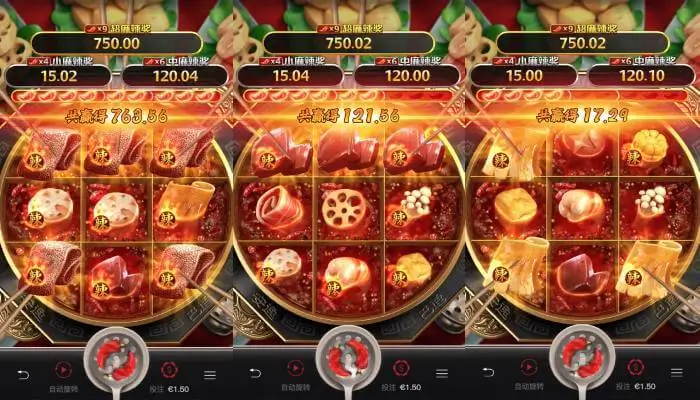 《麻辣火锅》的最大亮点在于其“沸腾机制”。当游戏进入特定状态时,火锅将开始剧烈翻滚,部分符号会被激活或升级,从而提升整体组合价值。